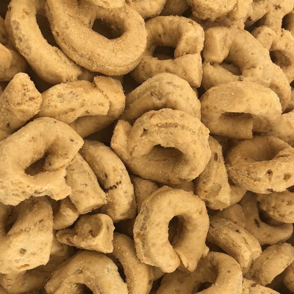 Ingredienti: farina di grano tenero “0”, vino bianco (contiene solfiti), olio di girasole (alto-oleico), olio di oliva, olio di sansa di oliva, sale iodato, semi di finocchietto (2,5%).