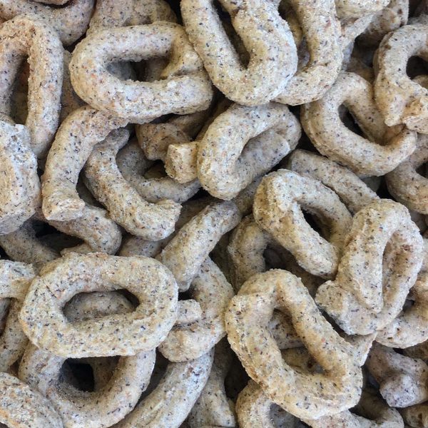 Ingredienti: farina di grano tenero tipo “0”, farina di grano tenero tipo “0” INTEGRALE macinata a pietra, farina di VENERE, farina di grano tipo “2” macinata a pietra, farina di grano SARACENO macinata a pietra, lievito naturale di farina di grano tenero tipo “0” in polvere, amilasi, agenti di trattamento della farina: E300 (acido ascorbico), vino bianco (contiene solfiti), olio di girasole (alto-oleico), olio di oliva, olio extravergine di oliva, sale iodato.